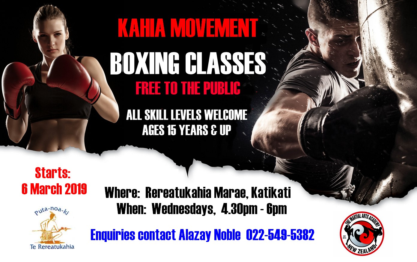 TMAA Katikati coming soon... with the support of Coach Sean Hayden and Te Rereatukahia Marae we have started delivering boxing classes from 46 Te Rereatukahia Pa Road at the Marae Wednesdays at 4.30pm. These sessions are sponsored by Te Rereatukahia and are free to the public to attend.
